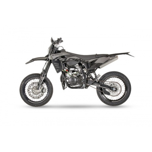 Motocicleta Sherco SE SM RS Blackmoon, para los mas jovenes que empiezan tienen una moto fiable y con buenos componentes que hara sus delicias. El modelo ofrece la estetica rompedora de las motos de Supermotard con los neumaticos de carretera y disco de freno de mas diametro para mejorar la frenada.
